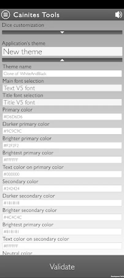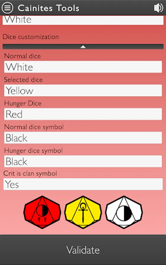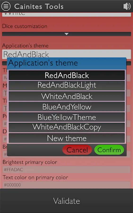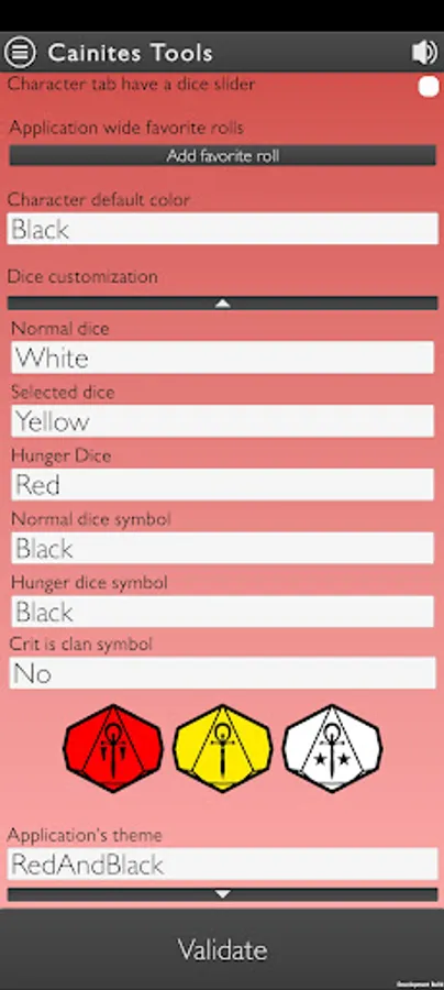 - Customize the color of the Cainites Tools application to meet their preferences.