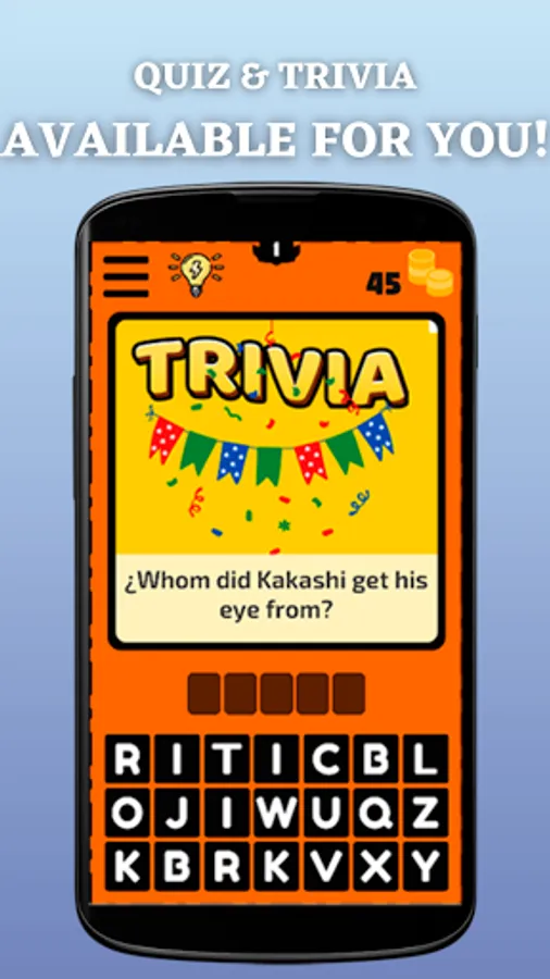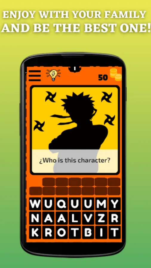 It is very easy to play Guess The NRTO Anime Character Quiz and Trivia, touch the image to clarify it more and select the correct letters to complete the name of the anime character that appears on the screen and once you have passed the level you will receive a bonus with which you can get clues in the following levels.