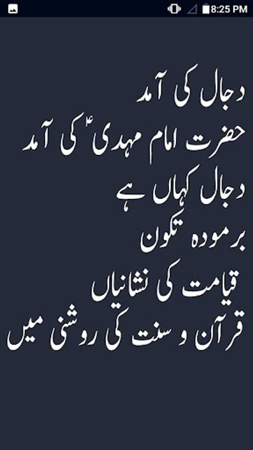 App have story of dijal in urdu offline.This app explains the Quran and Hadith references when the Dajjal is to come and also supports the current situation. If you want to read this, this is a great app. all content is in simple urdu language and free for every one this is a best nowel in urdu .every topic have reference of Quran and hadith.