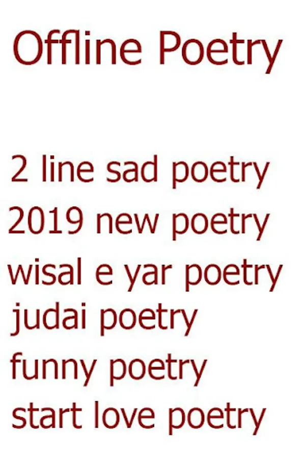 App have poetry in urdu of mix poets if u like read poetry in urdu so this is best app for u because this app can work offline and its have heart touching poetry collection new and old urdu poetry . so we think this is best sher o shayri in urdu