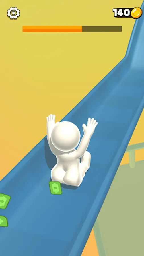 Welcome to Slide Down. Hold down your finger to slide down the slide. Keep upgrading your bum strength with the money earned from each round so as to reach the end of the slide safely. Have fun!