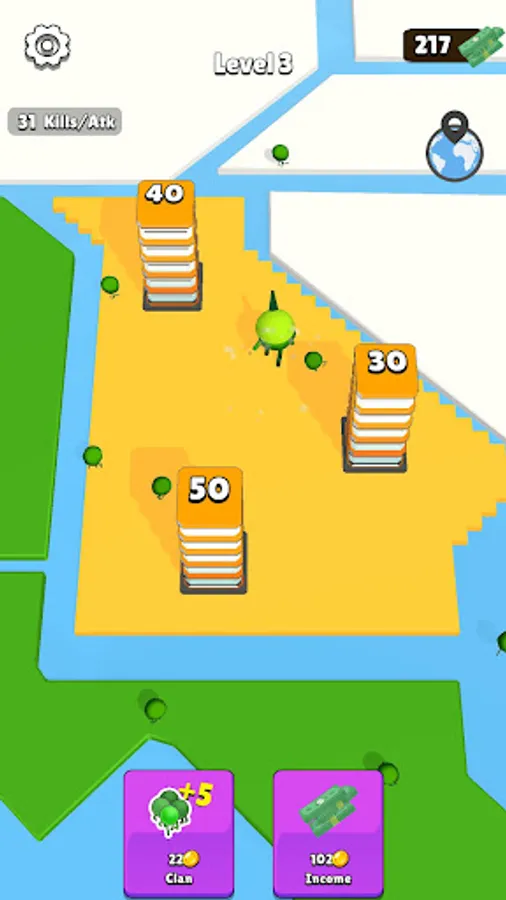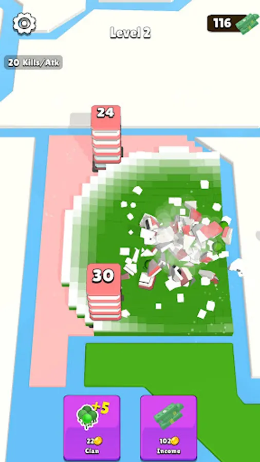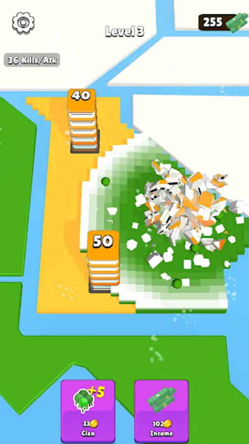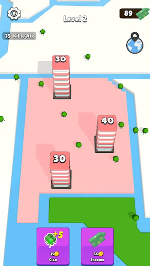 Tap on enemy buildings to destroy them and capture their territories. Increase the members in your clan to deal more damage.
