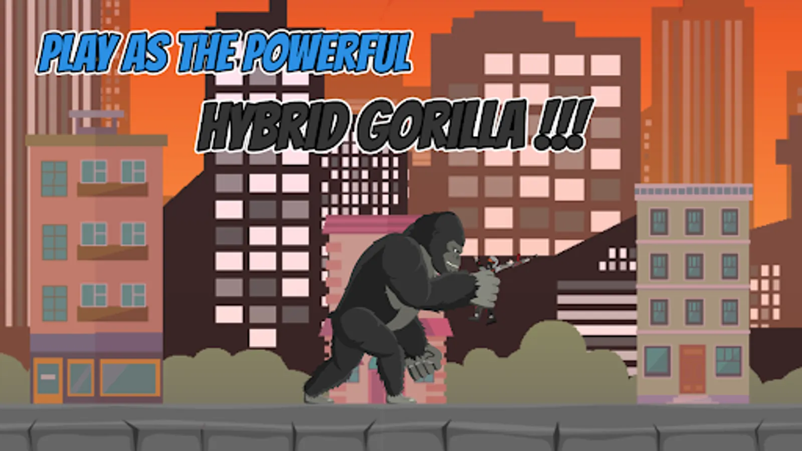 The Hybrid Gorilla is on a rampage! After being experimented on by humans for a long time, the Hybrid Gorilla broke out of the humans' lab and started rampaging across the urban city! Not wanting any other animals to suffer the same fate, the Hybrid Gorilla is determined to destroy the city and stop further hybrid experiments from happening.