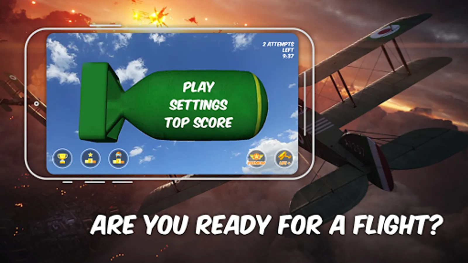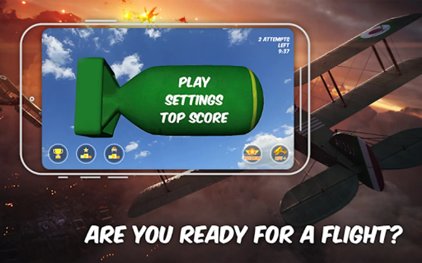 Fasten your seat belts, put on your helmet, goggles and get ready for a flight. Your trouble-free heavy machine gun and your favorite bombs will surely lead you to success. Your seemingly simple warplane is capable to force to reckon with yourself and become a real bomber, bringing destruction to your enemies from behind the clouds or hitting targets in the midst of the clear sky. You are not holding a simulator - you are holding in your hands some stunning explosions, air chases, incessant shots and fantastic air pirouettes.