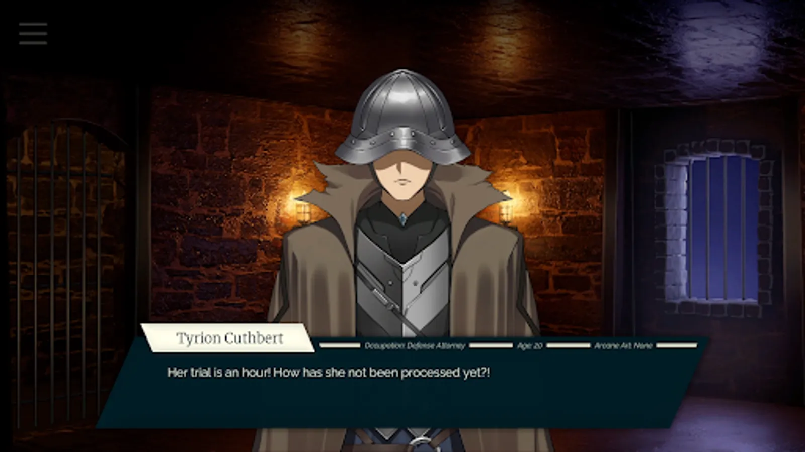 Tyrion Cuthbert: Attorney of the Arcane is a courtroom visual novel. You play as a defense attorney who practices law in a world of fantasy and wizards. You must defend clients accused of various crimes committed using magic and use the rules of magic to prove them innocent. However, the system is corrupt to its core and manipulated by the aristocracy. Will you acquit your innocent clients in light of that? Or will you fall before a corrupt judicial system?