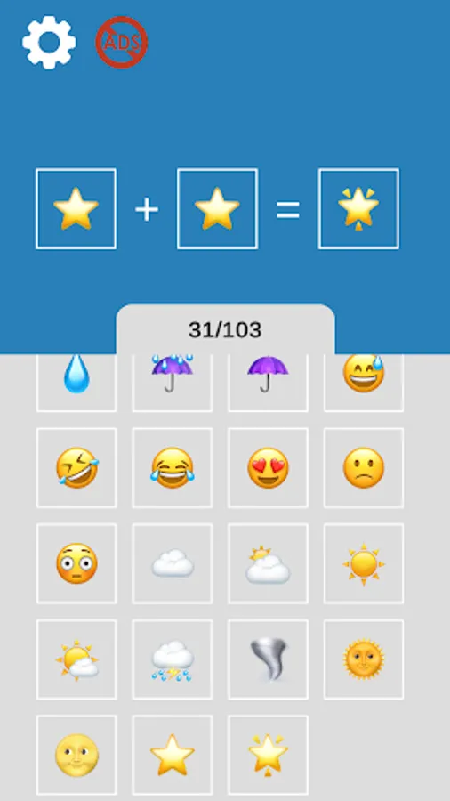 ● If you combine two emoticons which has combination for creating another new emotion. You collection of emojis will be updated with crafted smile. 🎁