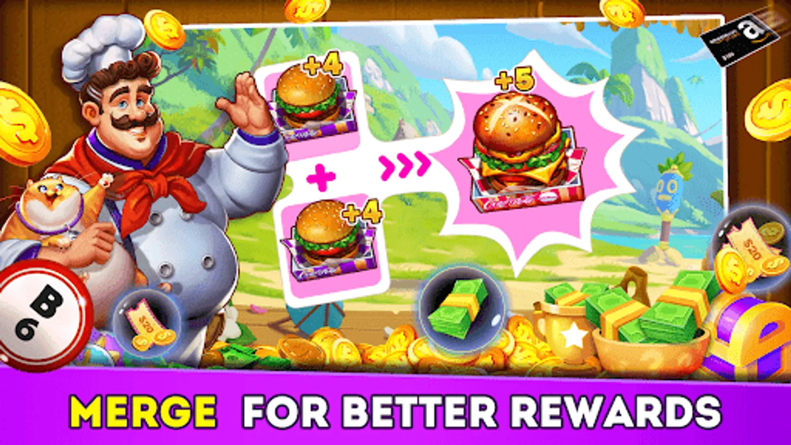Earning real money and real cash jackpot rewards in the real cash money bingo games is so easy! You'll be a millionaire in no time! But you're also running a restaurant. You need a break to let go of the joy you've had for easy real money cash. In the bingo restaurant, your guests already eager for your delicious food. Use your talents to cook delicious food for your guests! Simply move your fingers to merge the same food to make delicious food to your guests and you'll be rewarded with real money cash jackpot rewards, real cash rewards and jackpot rewards! Keep improving your cooking skills, make more delicious food and advanced recipes, and win more real money rewards, real cash rewards and jackpot rewards in the real money cash bingo games!