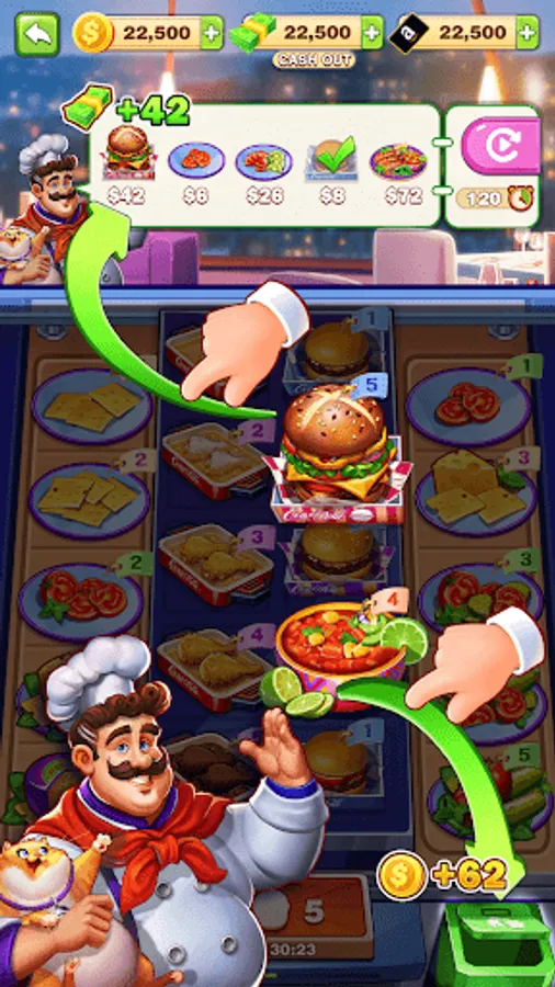In the restaurant you run, there will be a steady stream of customers looking forward to your cooking skills! You are the chef and boss. No guest will refuse your food. Everyone who enjoys the food will leave a generous tip! Continuously operate and expand your restaurant. Make more delicious food. Simply move your fingers to merge delicacies to satisfy customers, get more tips, and make real money rewards easily!
