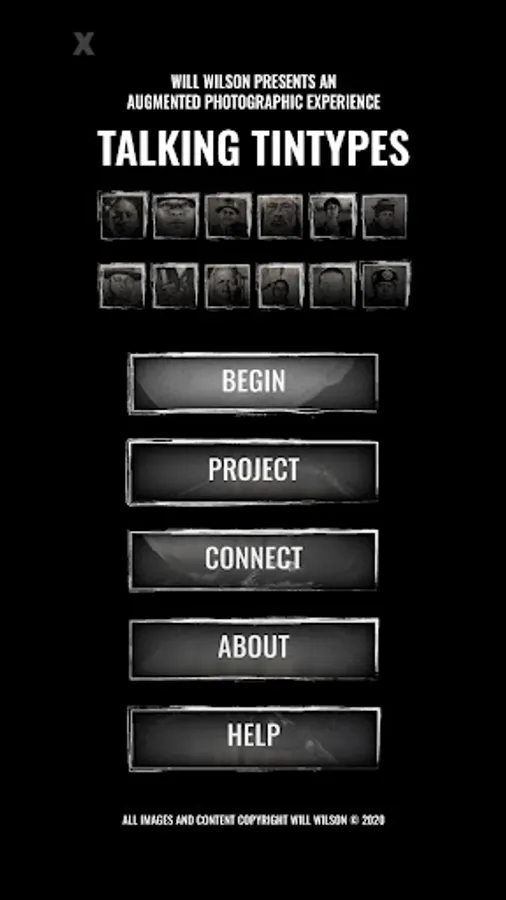 To activate the augmented reality (AR) content, you must be in a location where the Talking Tintypes collection is being exhibited (e.g. museum, gallery). You may also access limited content by visiting the artist's website: http://willwilson.photoshelter.com and selecting the "Talking Tintypes" collection.
