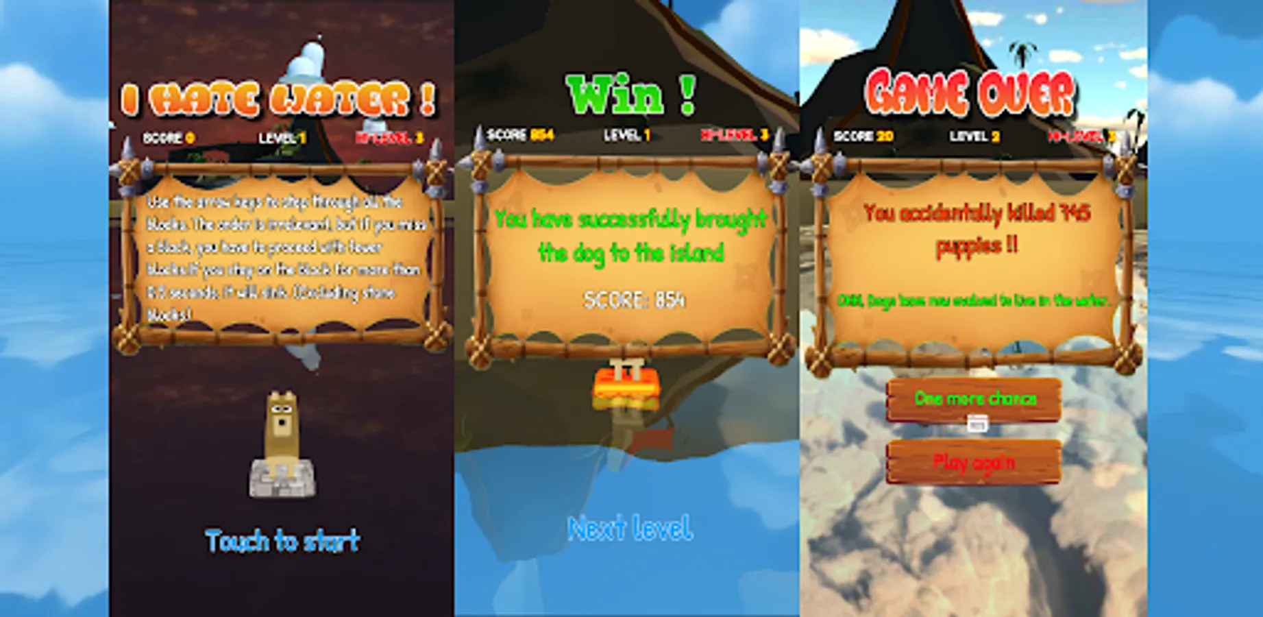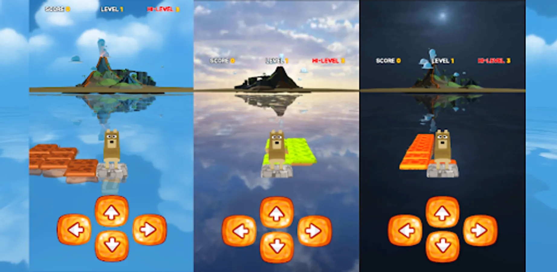 How To Play: Use the arrow keys to control the dog to run on blocks of land. There are 10 soil blocks continuously generated. You have to step on them in the correct order. If not, you will have to keep going with less and less soil blocks. Continue like that until you reach the island