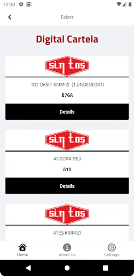 Digital Color Chart Mobile Application; It is an application in which the details and properties of the paints produced by our company from mixed paints are shown.
