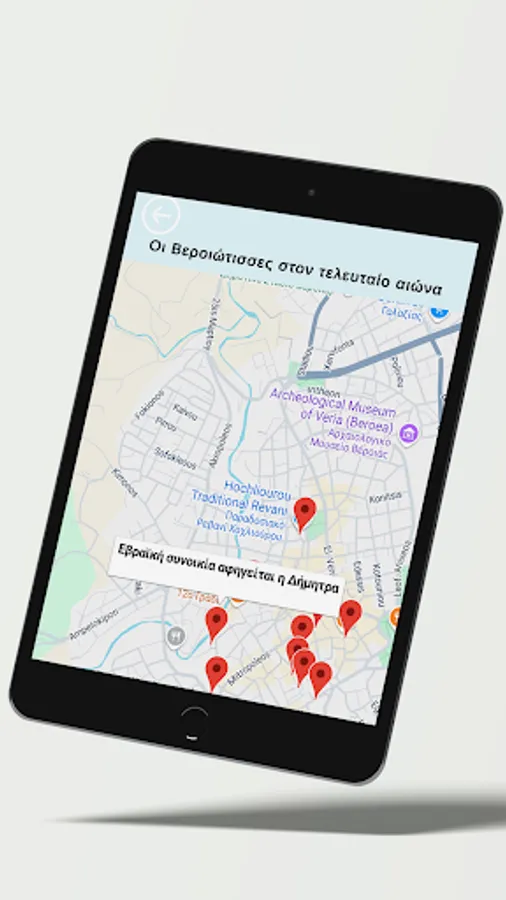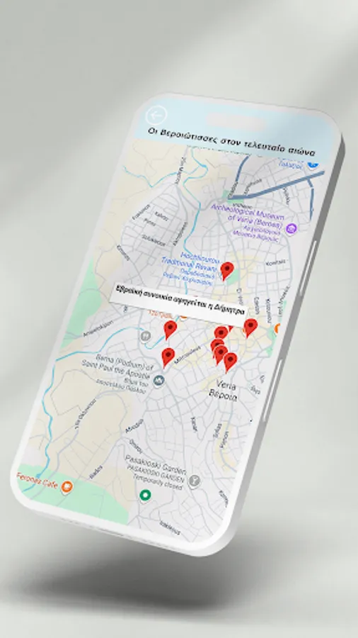 Small self-contained digital performances, like small street "theatres", projected using an augmented reality application in points of the urban fabric of the city of Veria.