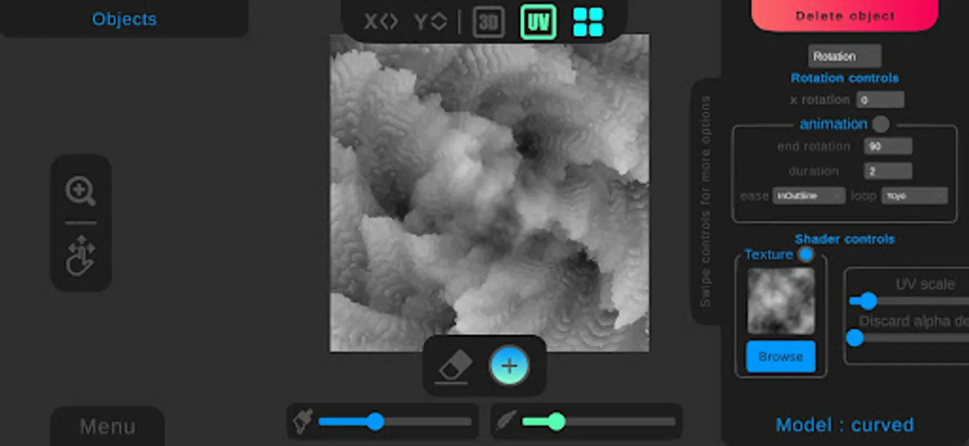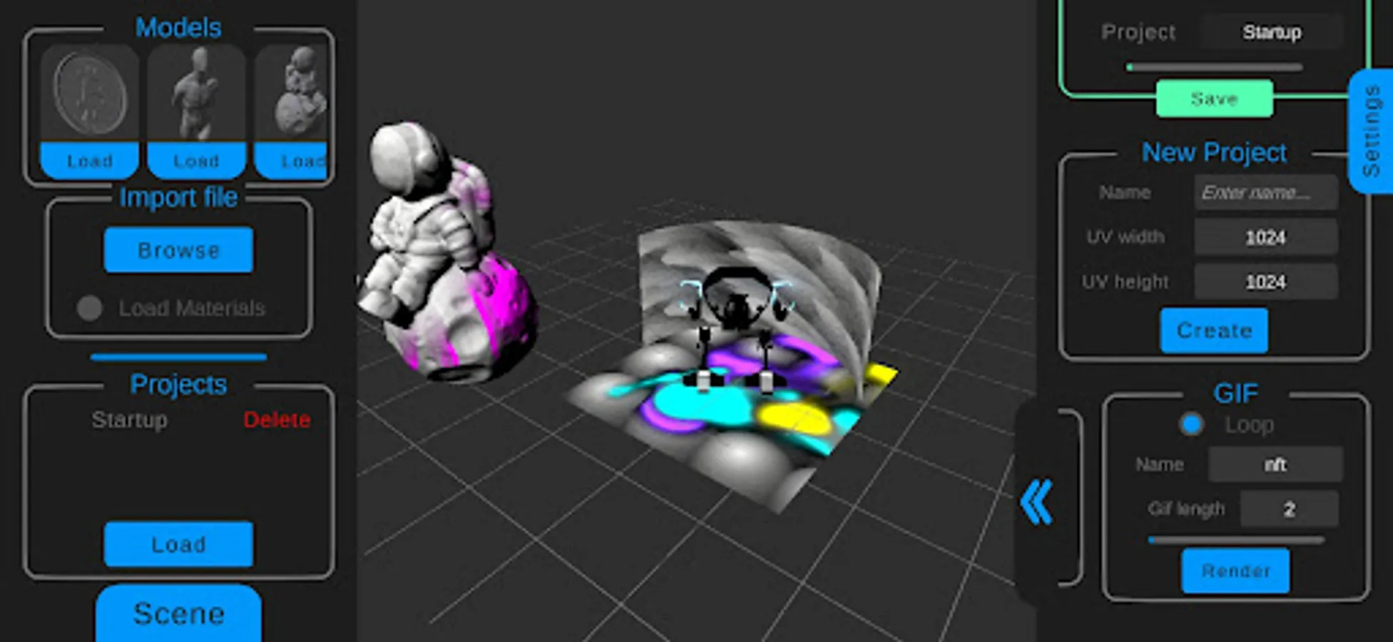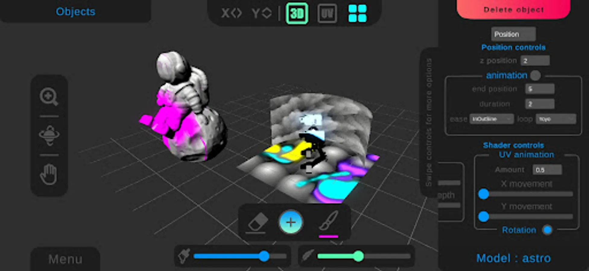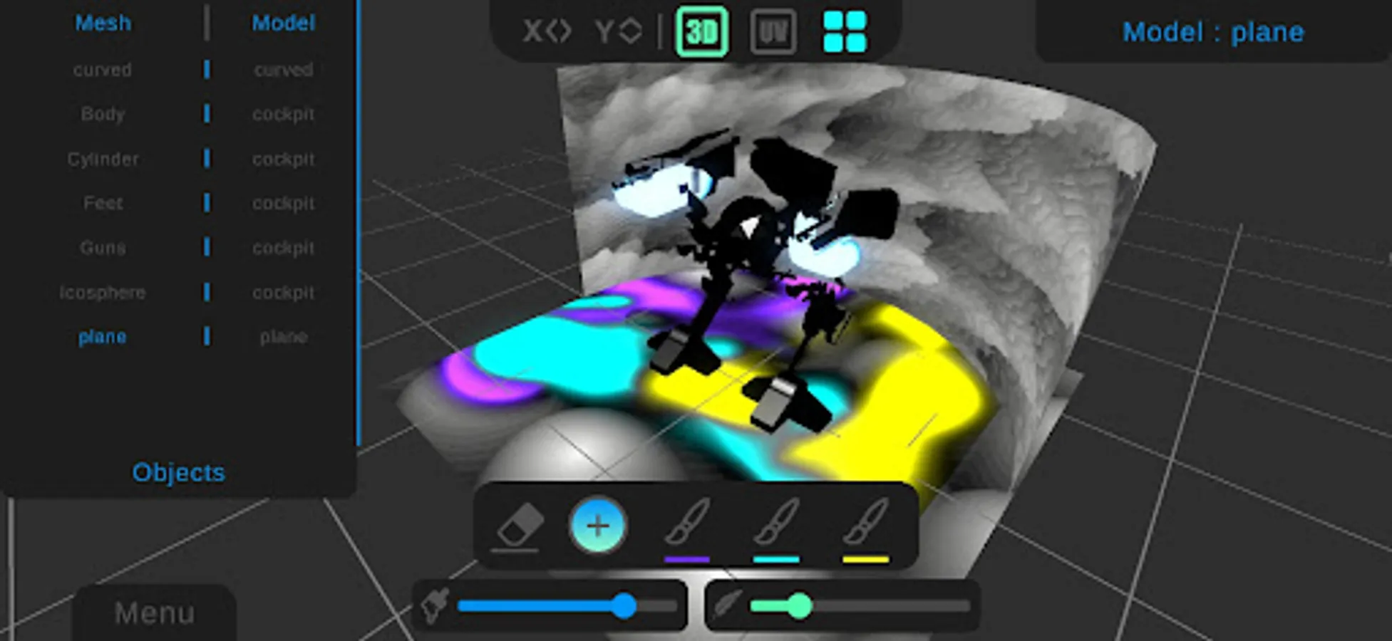 - Draw over 3D models with brush tools (up to 3 brush layers).