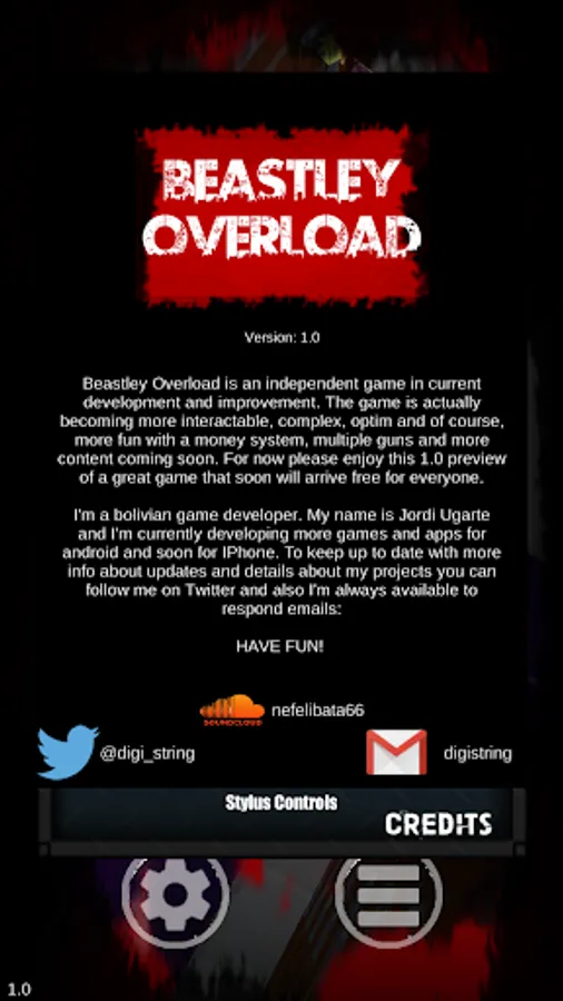 I'm a Bolivian game developer. My name is Jordi Ugarte and I'm currently developing more games and apps for Android and soon for IPhone. To keep up with date with more info about updates and details about my projects you can follow me on Twitter and also I'm always available to respond emails: