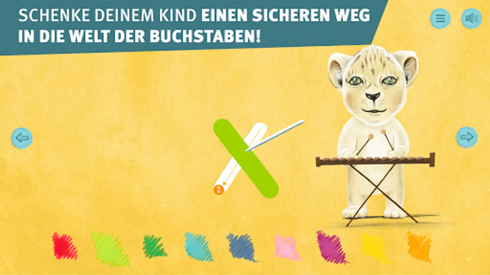In the app, your child will find swing exercises, letters (the whole ABC), numbers and words. All content is free to follow with your finger or pen. Your child takes on the role of the lion child Lu, who wants to get to know the wonderful world of writing. It meets all kinds of animals and thus learns the ABC. The story is told through hand-made illustrations.