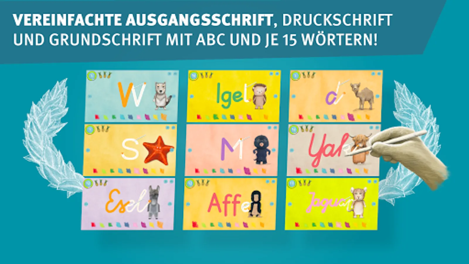 The aim of the app is to support the process of writing and ABC learning. The app does not guarantee the success of this process or full compliance with all curricula. As a developer, I try to offer the best possible product. If you find an error, please write an email to feedback@weltderbuchstaben.de. Thanks and have fun!