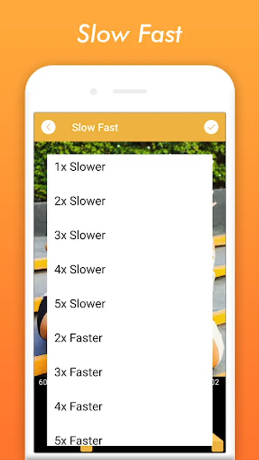 You can select 5 type of slower and faster video(1X , 2X , 3X, 4X, 5X)