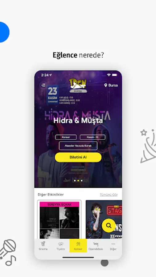 concert you want to go with Biletinial application, theater, cinema, education, soccer, basketball, volleyball and much more experience you get tickets to this day I've ever experienced at ease awaits you.