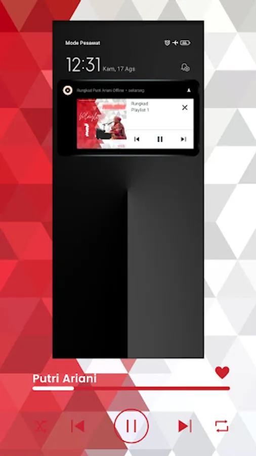 3. Can be played in the background: You can listen to songs and exit the application to open other applications. For example, you open another application such as the 17th August 3D Simulator game or the 17th Independence Game, but you can still listen to Putri Ariani's song from the Rungkad Putri Ariani Offline application.