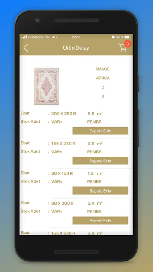 + Barcode or QrCode by reading the information about the size of the carpet and inventory to reach.