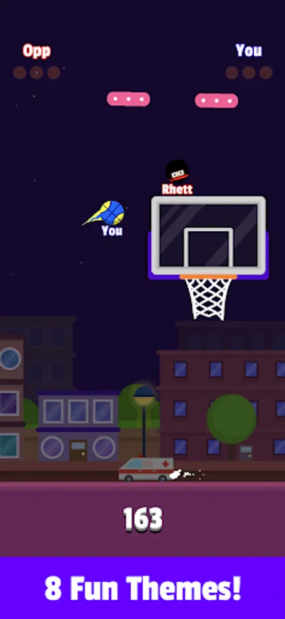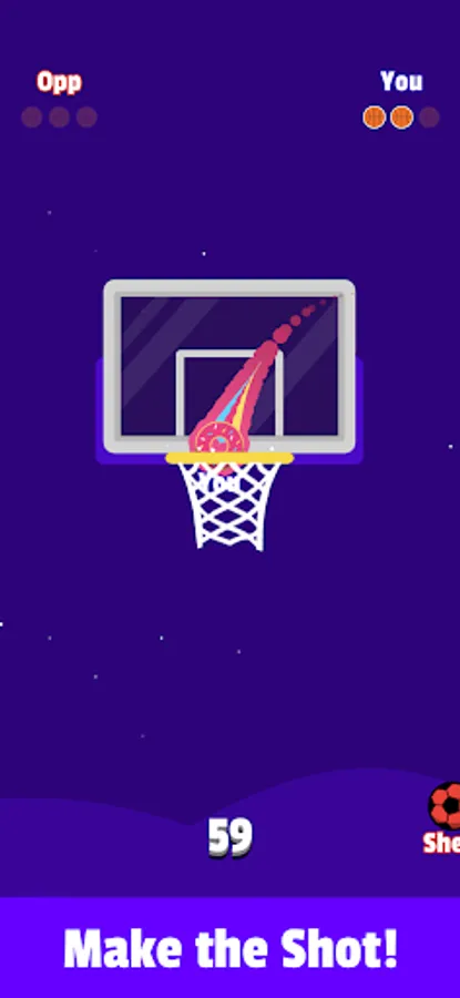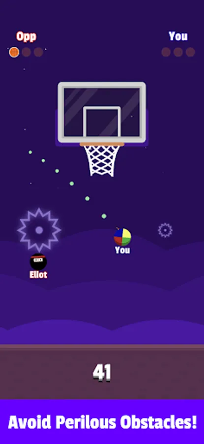 Drag your finger to sling the ball into the hoop, all while avoiding perilous and your opponents ball. The first one to make three shots in a level is the winner. You will face someone different in every level!