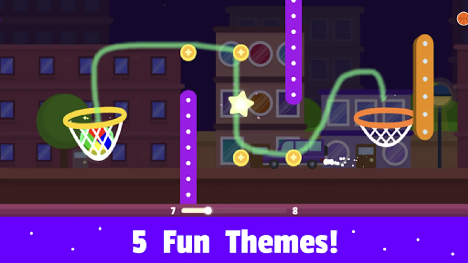 There are 8 total themes in BasketDraw that can be unlocked by completing missions and purchasing them with virtual currency. These themes range from outer space, to a big city, to an actual basketball court. The themes take a bit longer to unlock and are meant to allow the players to have some long term goals in game.
