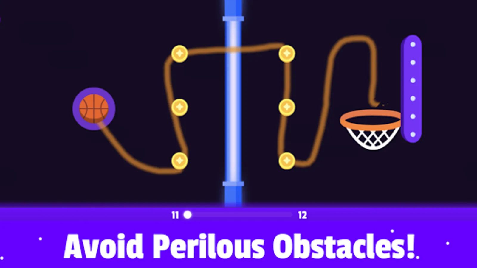 Draw a path and guide the ball past perilous obstacles into the hoop. There are 3 stars to collect in every level, and plenty of coins to pick up as well! You have 5 lives in each level.