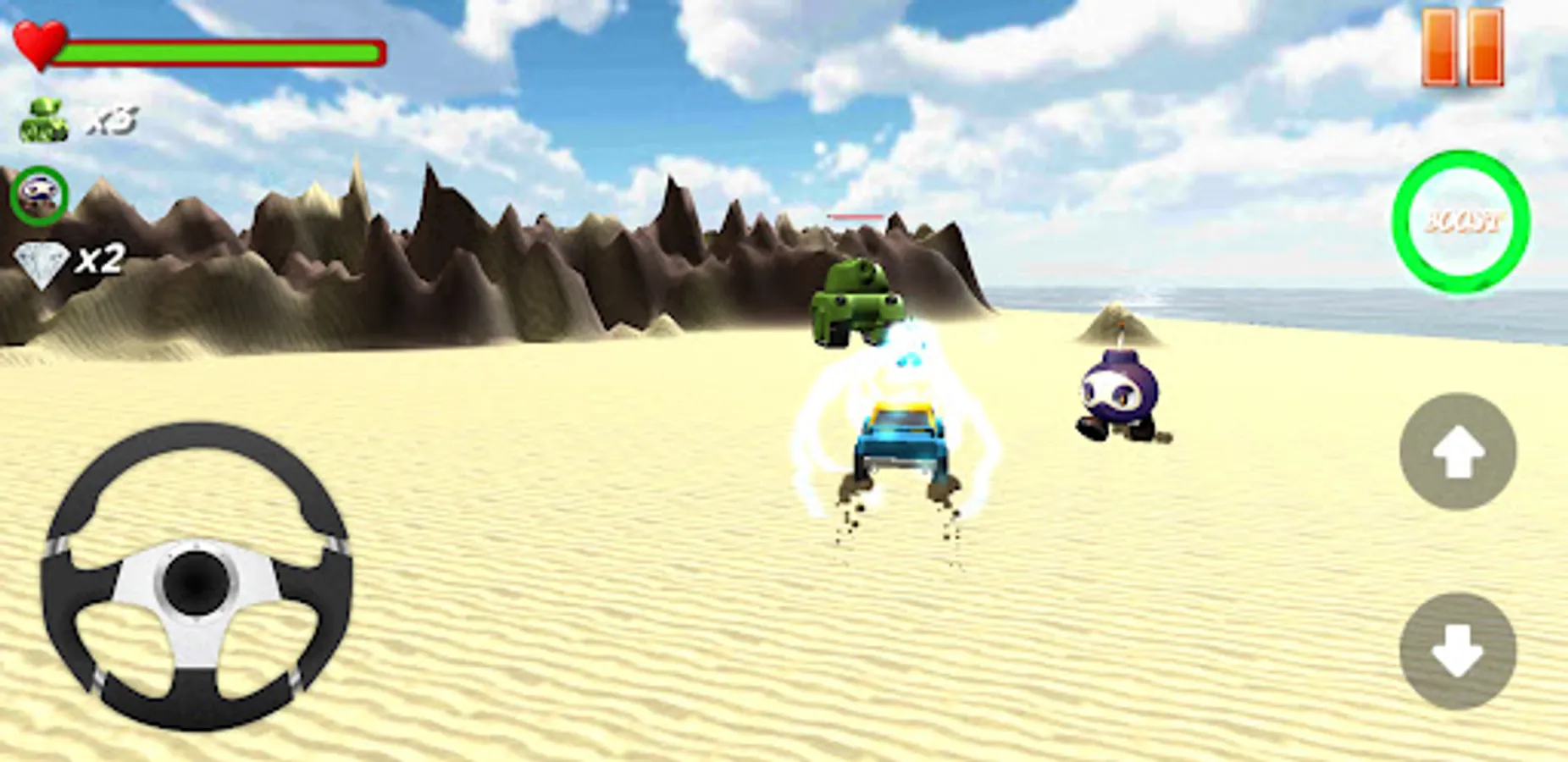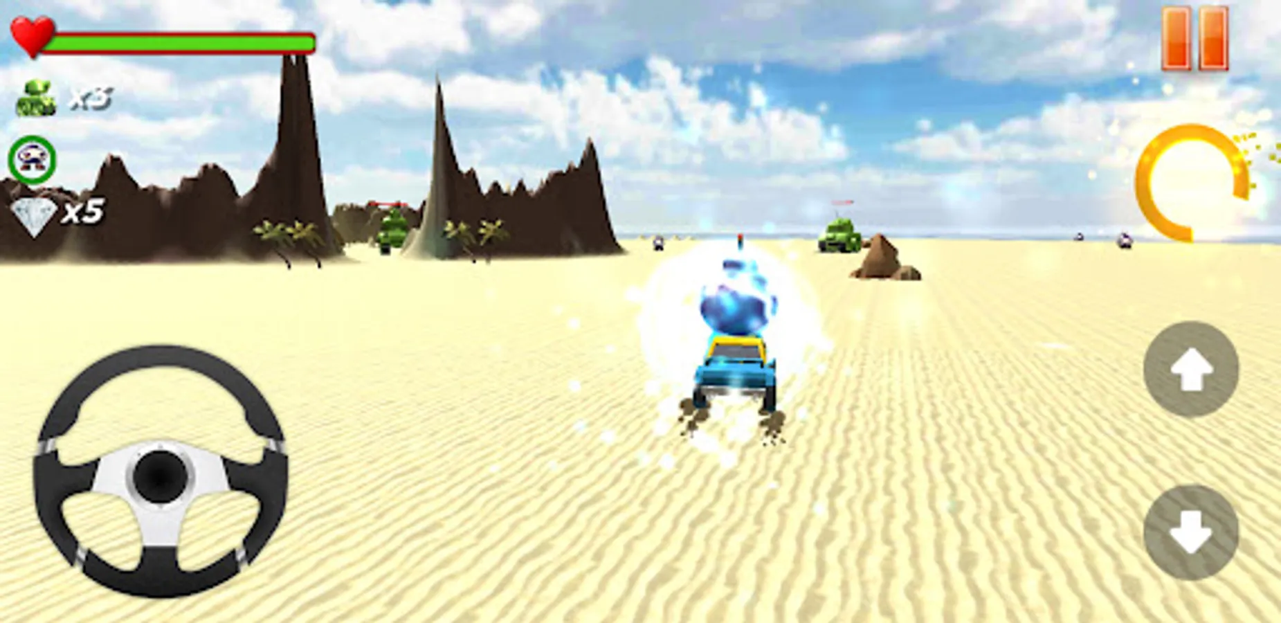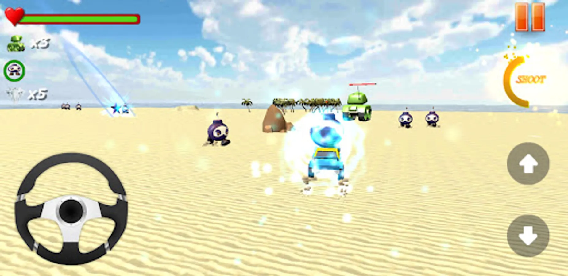 ● Three steering options of your car to drive ,avoid,aim and shoot:Steering wheel,Touchpad,Mobile