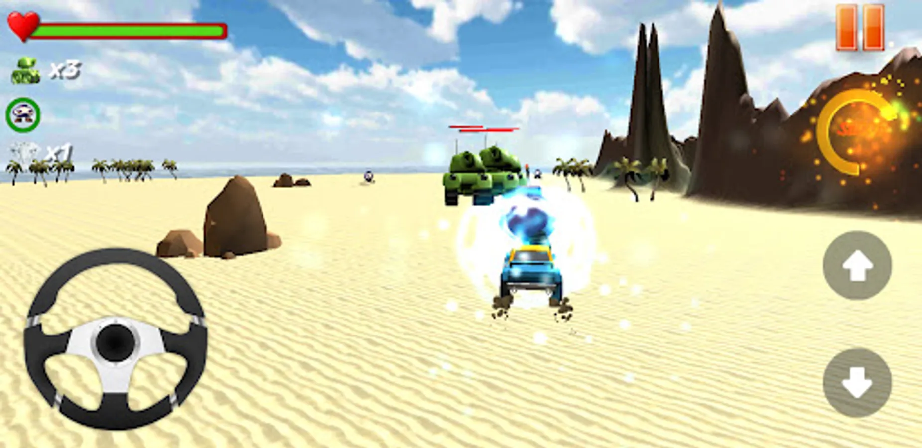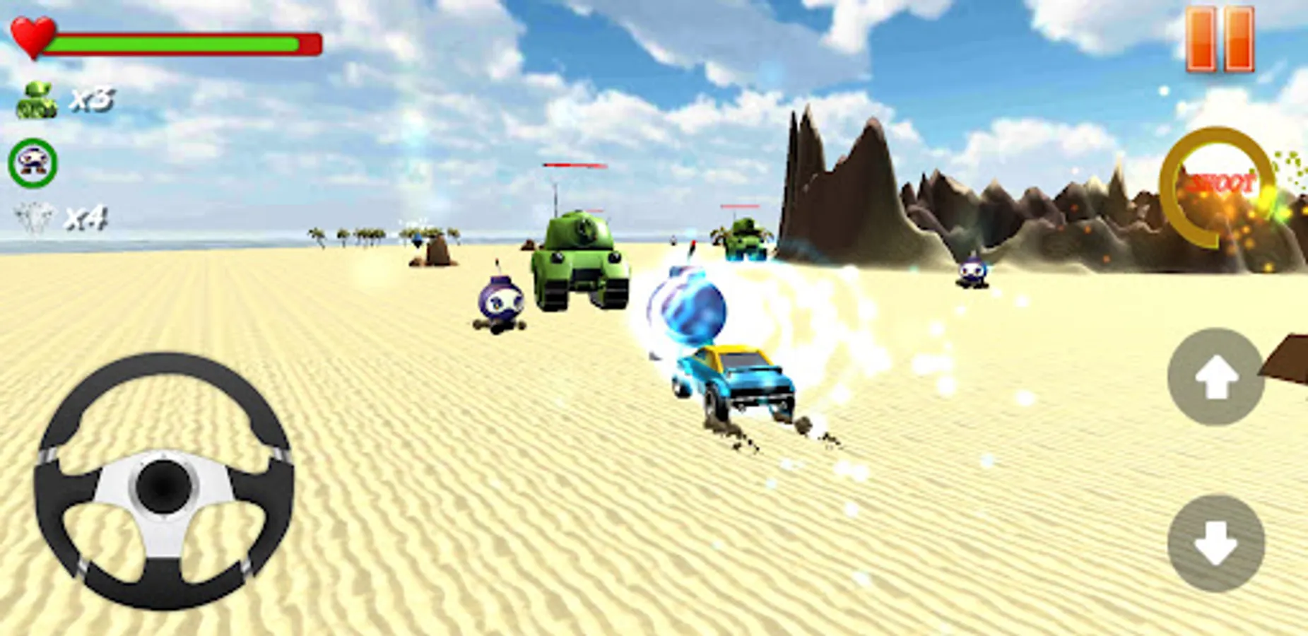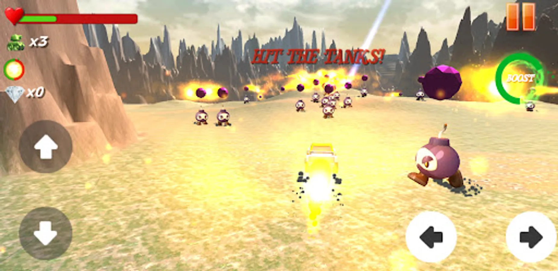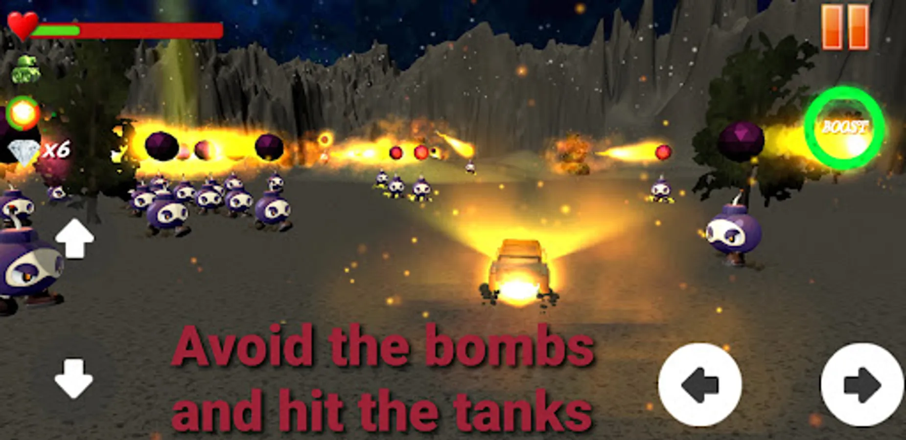 With your car avoid and trap the angry bombs ,aim and shoot to destroy the tanks.