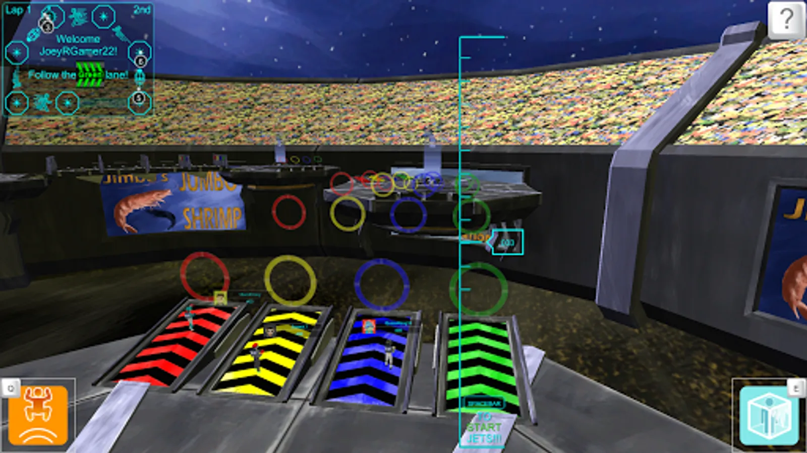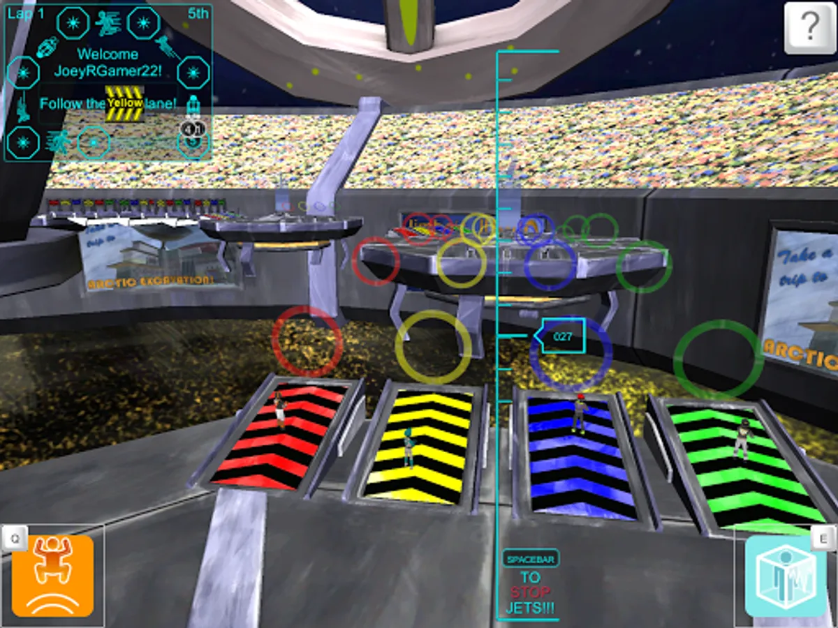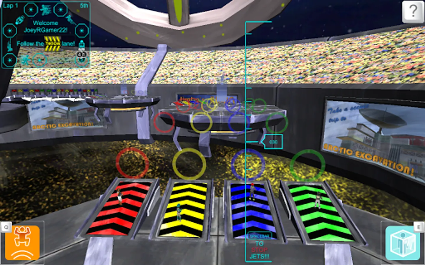 The game objective: be the first to cross the finish line by racing through the obstacles and solving problems along the way to earn points.