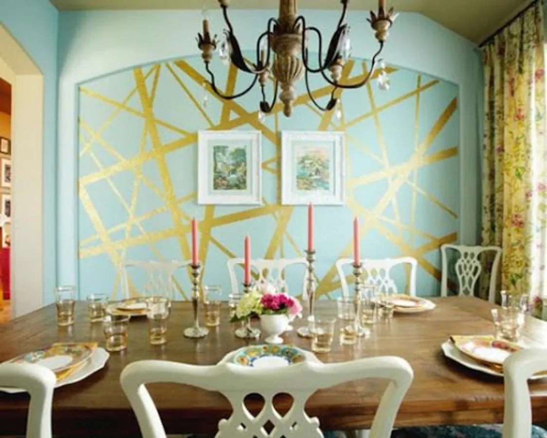 Remember the black mirror that you added at the beginning? Well, now it is time to add plates and platters to join in cinch with that mirror. This wall arrangement can be expanded and reconfigured as your collection grows. On top of the bar you can add a lamp, which in itself will add height and ambiance to the composition. It's the little touches that will help you create a dining room you are truly proud of.