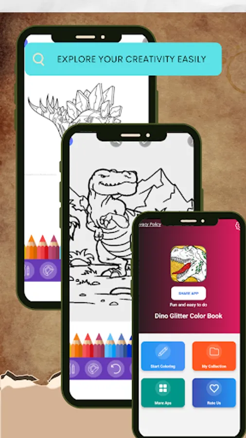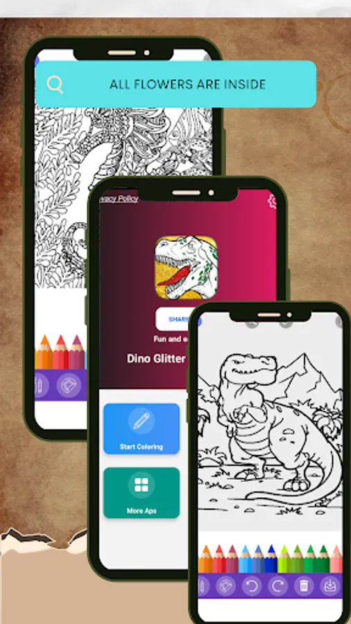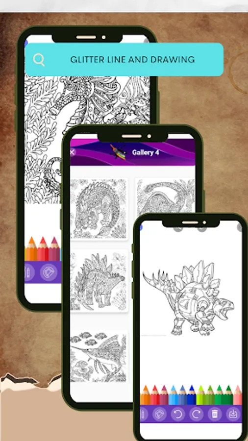 Dino Glitter Color Book is a perfect game for stimulating the creativity for adults. If you love dinos and like to coloring, this Dinosaurs color game is great.