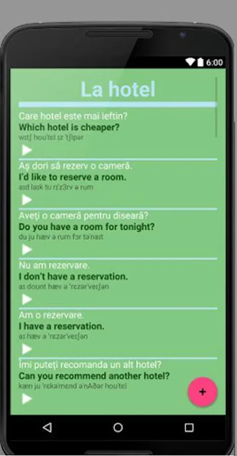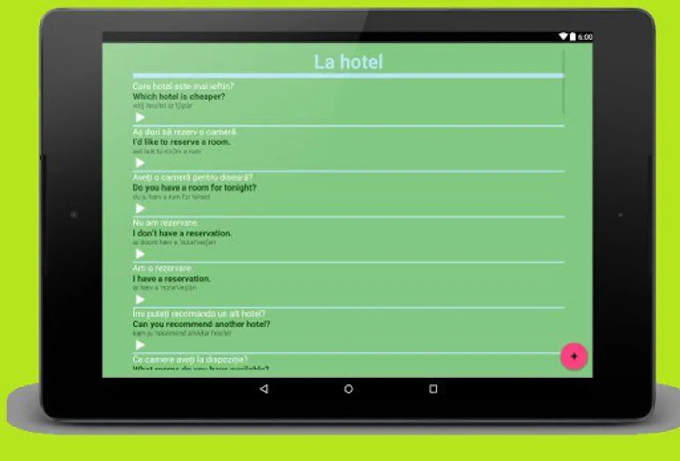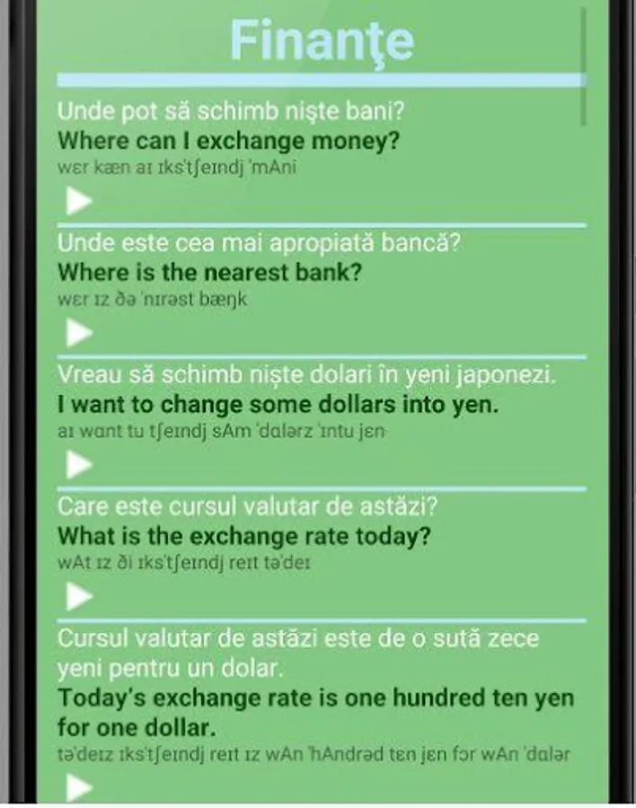 This application is an application designed for audio all Romanians in the country or abroad who want to study English. It contains over 500 audio examples with translation and pronunciation, plus many other features, such as audio texts translated and explained and pronunciation lessons.
