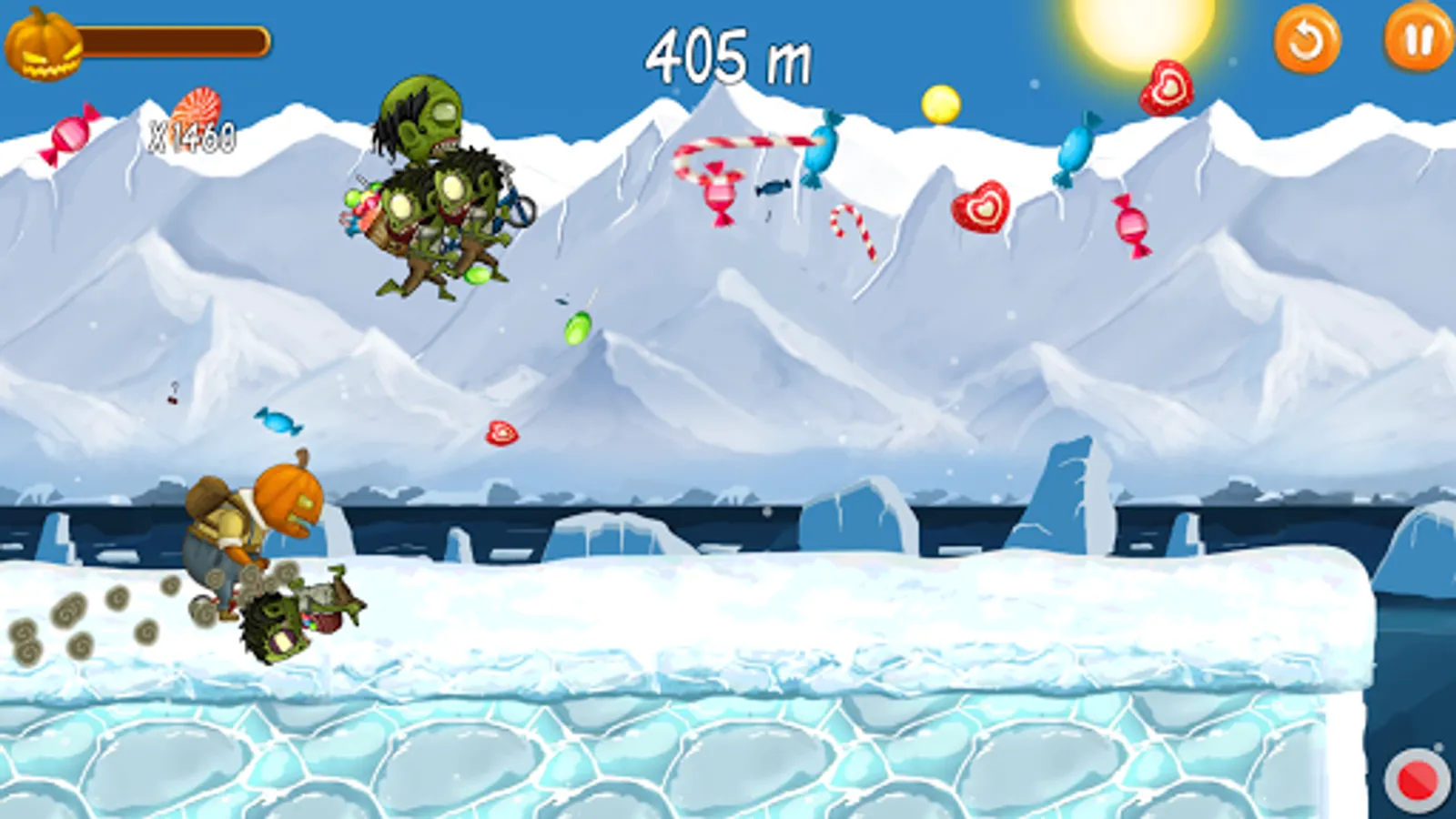 There are 4 seasons (Spring, Summer, Autumn and Winter) with different obstacle you can try. How far you can chase them? The tiny zombies love candy and they don't eat brain, they will not give you back the candies easily.
