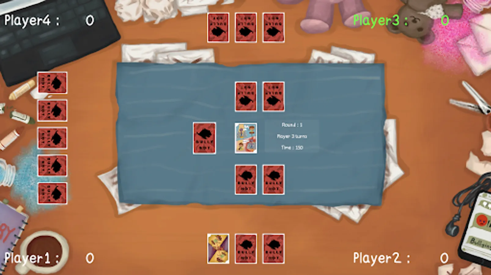 Bully Not to be Not Bully is a card game with an anti-bullying campaign policy. Starting from the youngster "Toi" that the world is so cruel. She was always being bullied. Players have to use cards to guide the "Toy" solution to the problem. The player who can guide the best will score points. Compete with friends In addition, players will learn how to solve problems with bullying as well.
