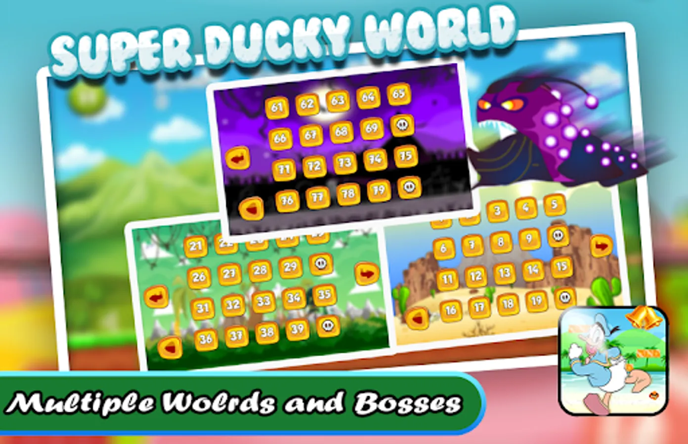 Super Ducky World is a super Adventure smash and legendary side scrolling platformer, you have to finish level by level to move to another world Super Ducky, Get Ready For an Epic Adventure with exciting levels Super Ducky World .