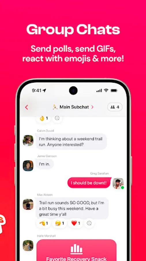 • Within your Dive Group, subchats are dedicated to topics where you talk with friends, plan the next hangout, and send polls, photos, videos, and GIFs.