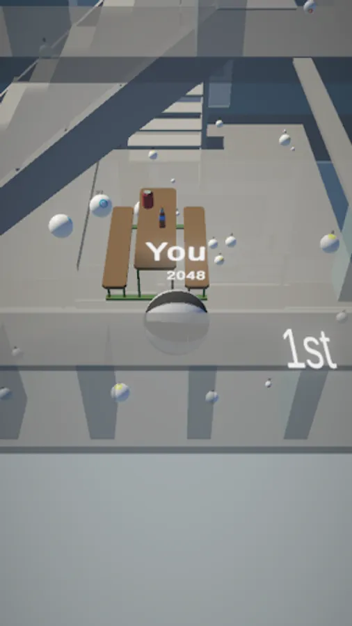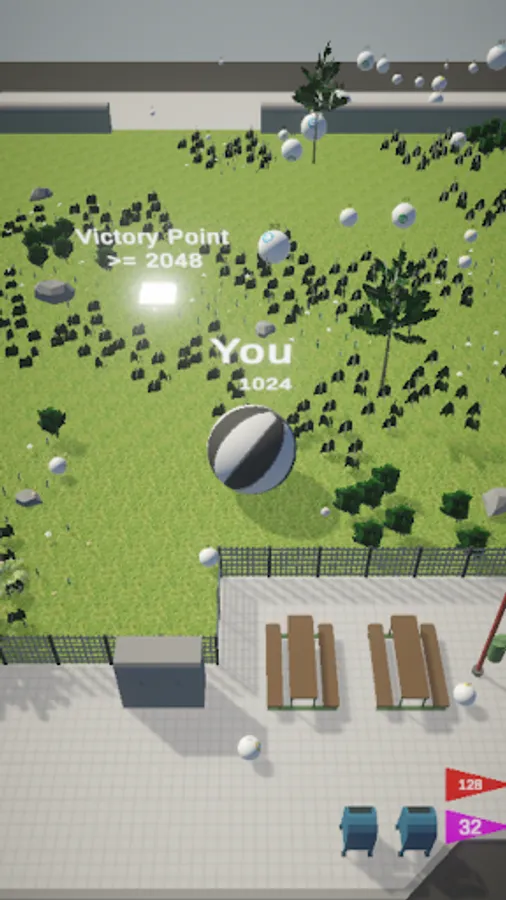Collect and merge with white balls, grow to 2048, reach victory point to win!