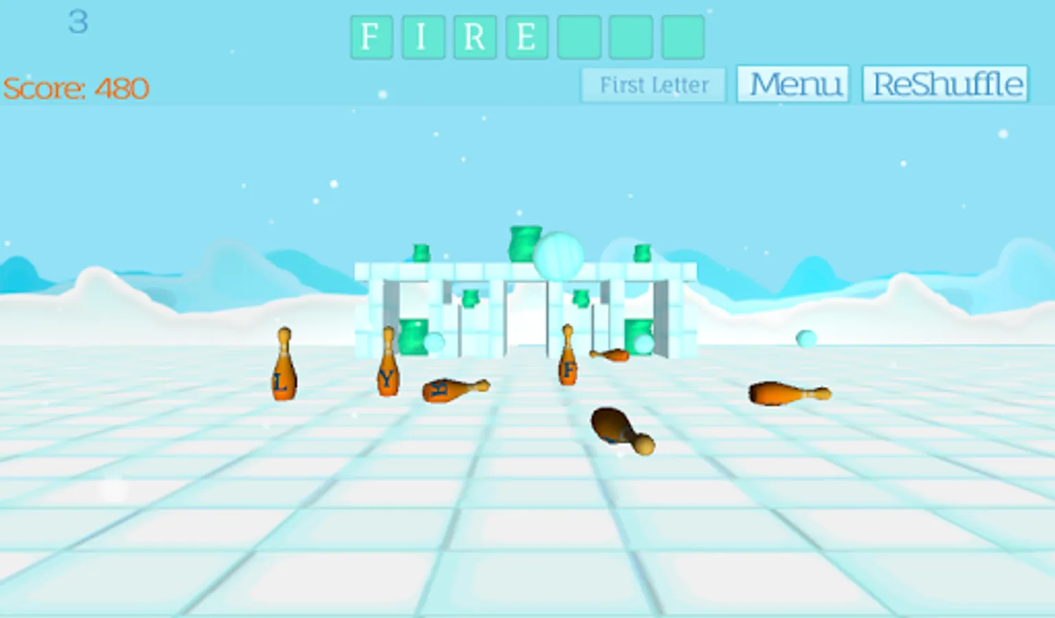 Each pin has a letter. When you shoot down the pins in the right order to complete the word, you finish the level and get score.