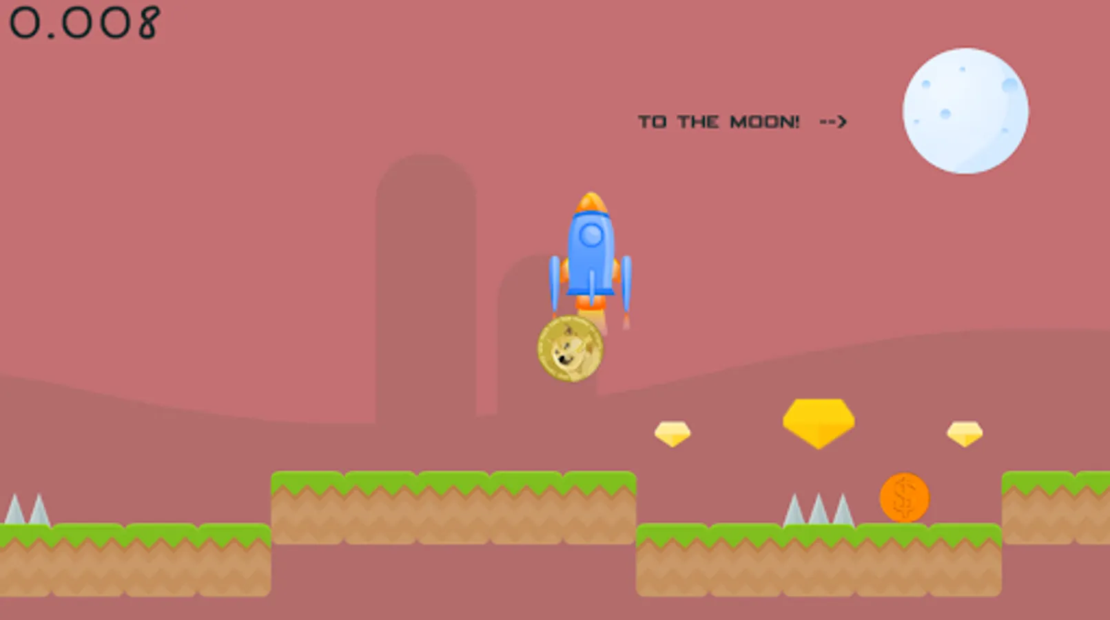 Steer to safety by jumping on mushrooms, avoiding rocks and spikes, and — most dangerous of all — enemy coins.