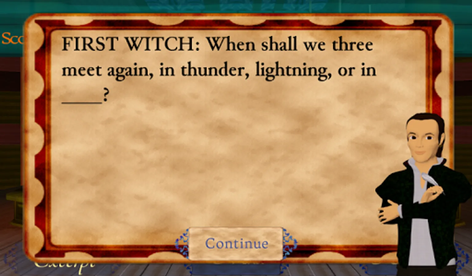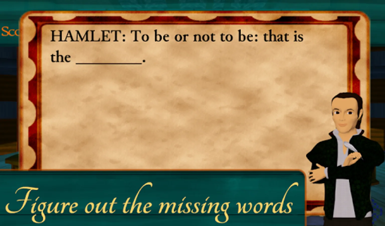 You get excerpts from Shakespeare's plays with some words missing. Fill in the missing words by tapping letters in the right order.