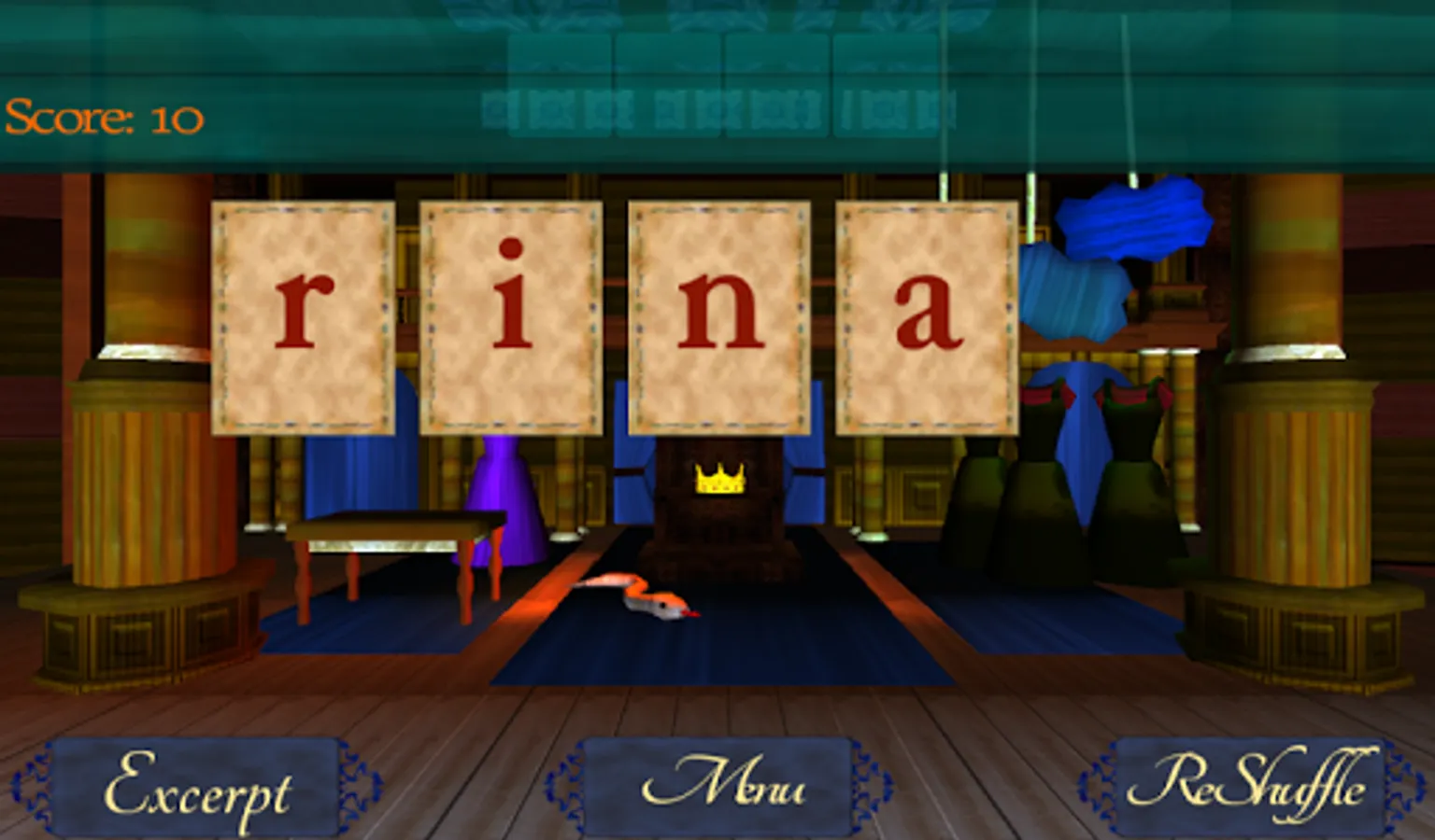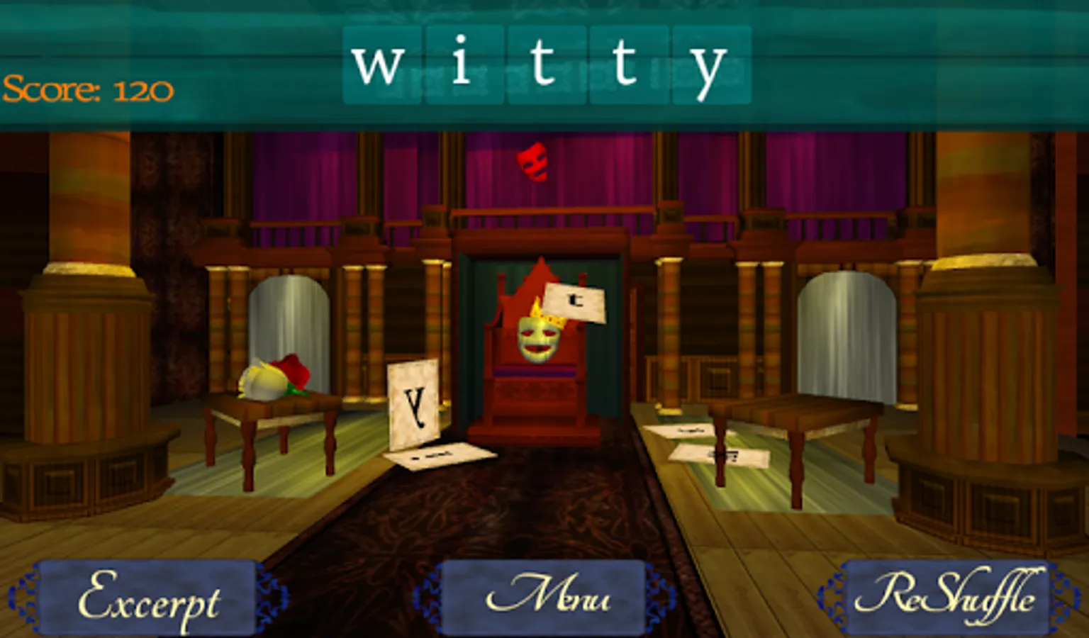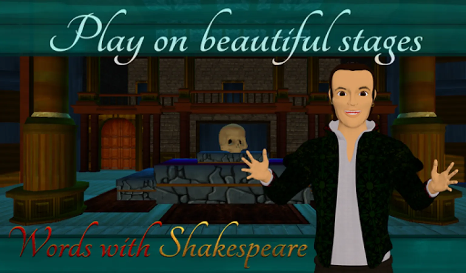 In Shakespeare Words you fill in missing words from William Shakespeare's plays by tapping letters, on different theater stages.