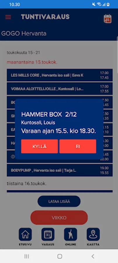 With the GOGO Liikuntakeskus application, you can easily browse our largest group exercise selection in Finland, manage your class reservations and view your training and payment history. On the app's map, you can see the locations of both GOGO Fitness Centers and GOGO Express gyms used by members, and you can conveniently carry GOGO Online with you as well