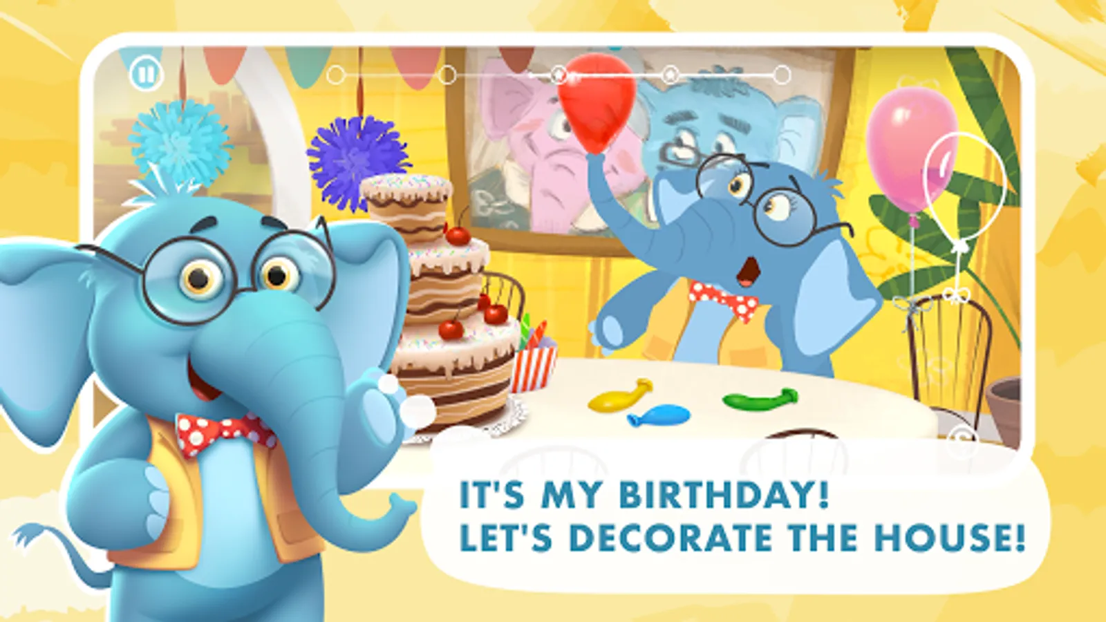 • Elephant's birthday. The birthday boy wants to invite friends to visit, but how can he arrange a holiday? Add decorations, of course! Your baby or toddler will be excited to help the elephant decorate the room, decorate the cake, inflate balloons, and light the holiday candles!