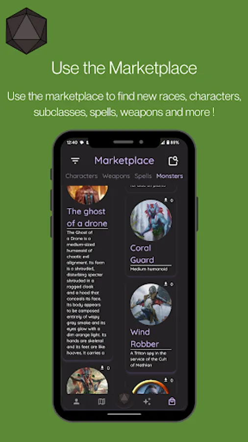 In DnCreate's marketplace, content flows freely among users. Share and explore a vast array of user-generated content, including characters, weapons, spells, and more. Join a creative community where imagination knows no bounds, and where your contributions can enrich the adventures of countless players.