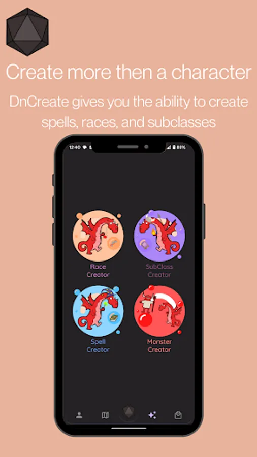 DnCreate empowers you to go beyond the core rules. Design custom races, subclasses, spells, and items using the app's built-in engines. Explore your imagination and share your creations with the DnCreate community, expanding the possibilities of your game with exciting homebrew content.