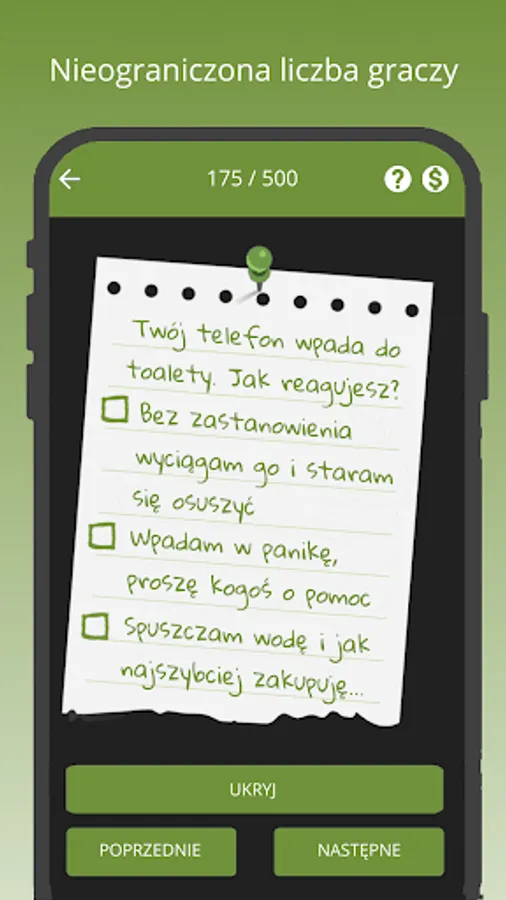 - the other participants try to guess the marked answer, if they fail, they drink to the bottom!