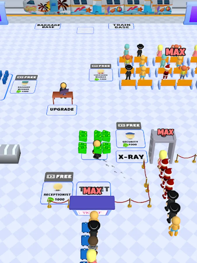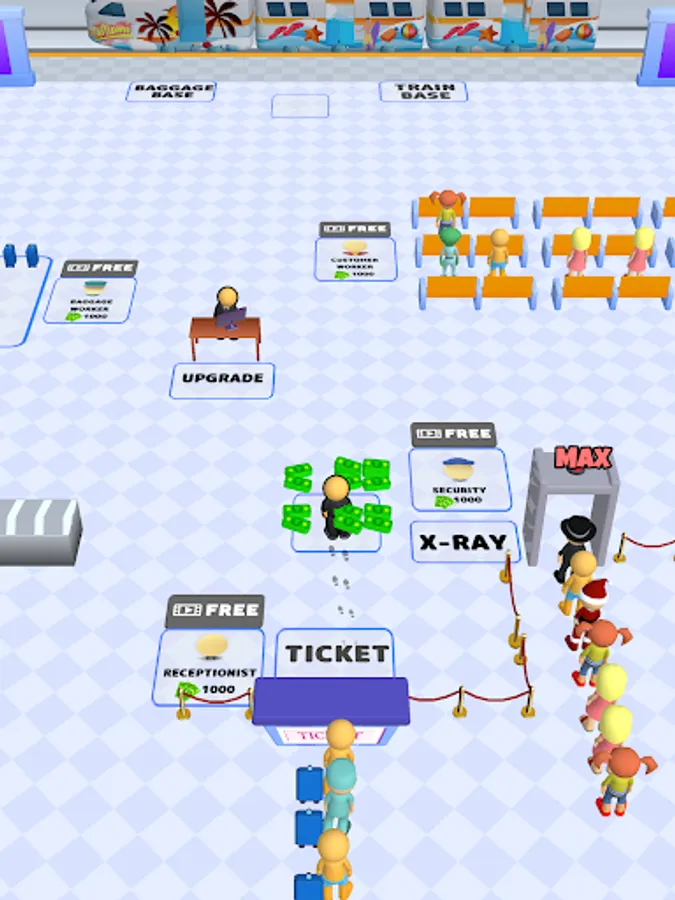 What's next? Increasing passenger capacity trains, more passengers and more luggage. Will you be able to keep up with them all alone or will you recruit staff to assist you? Don't forget that you can upgrade your train station faster by raising employees who can help you! Become the owner of the biggest train station in the world by upgrading your train station!
