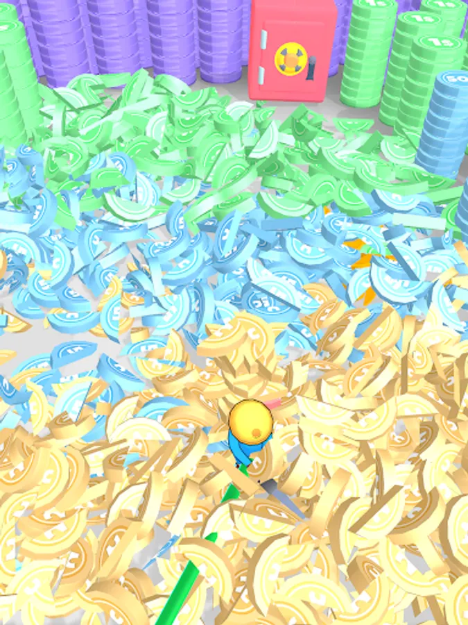 Cut the coins with water! In this addictive game, you skillfully cut and smash the coins stacked on top of each other with the pressurized water hose in your hand. Make fast and accurate cuts using your reflexes and skills. Earn points for each successful cut and participate in an exciting experience.