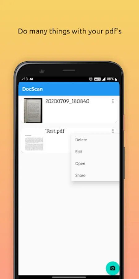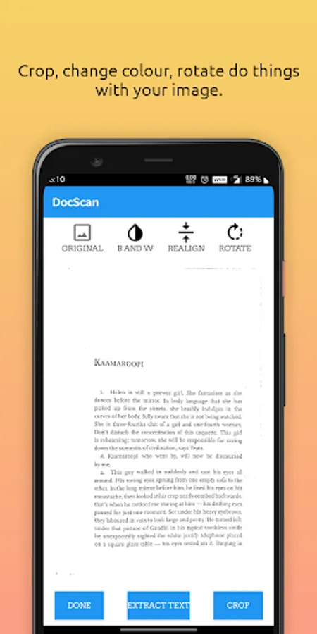 -DocScan now allows you to quickly digitize all types of documents and convert them into PDF format using your Android Phone. Just capture, edit, save and Voila! you have your documents in PDF format.